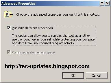 “Click on Properties > Advanced > Check the box ' Run with different credentials '”