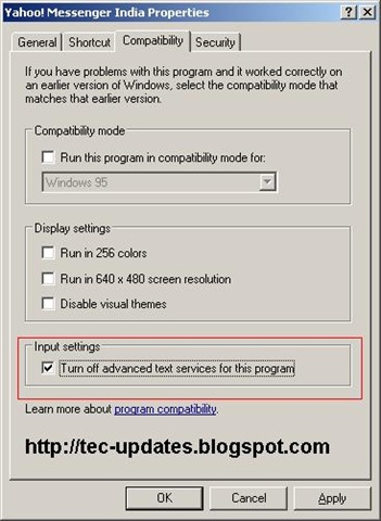 Click on Compatibility > Check the box ' Turn off advanced text services for this program’